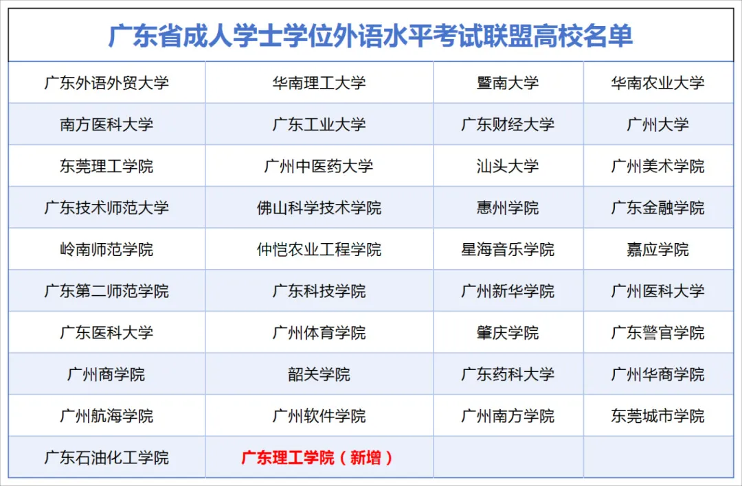 06 广东学位英语高校名单