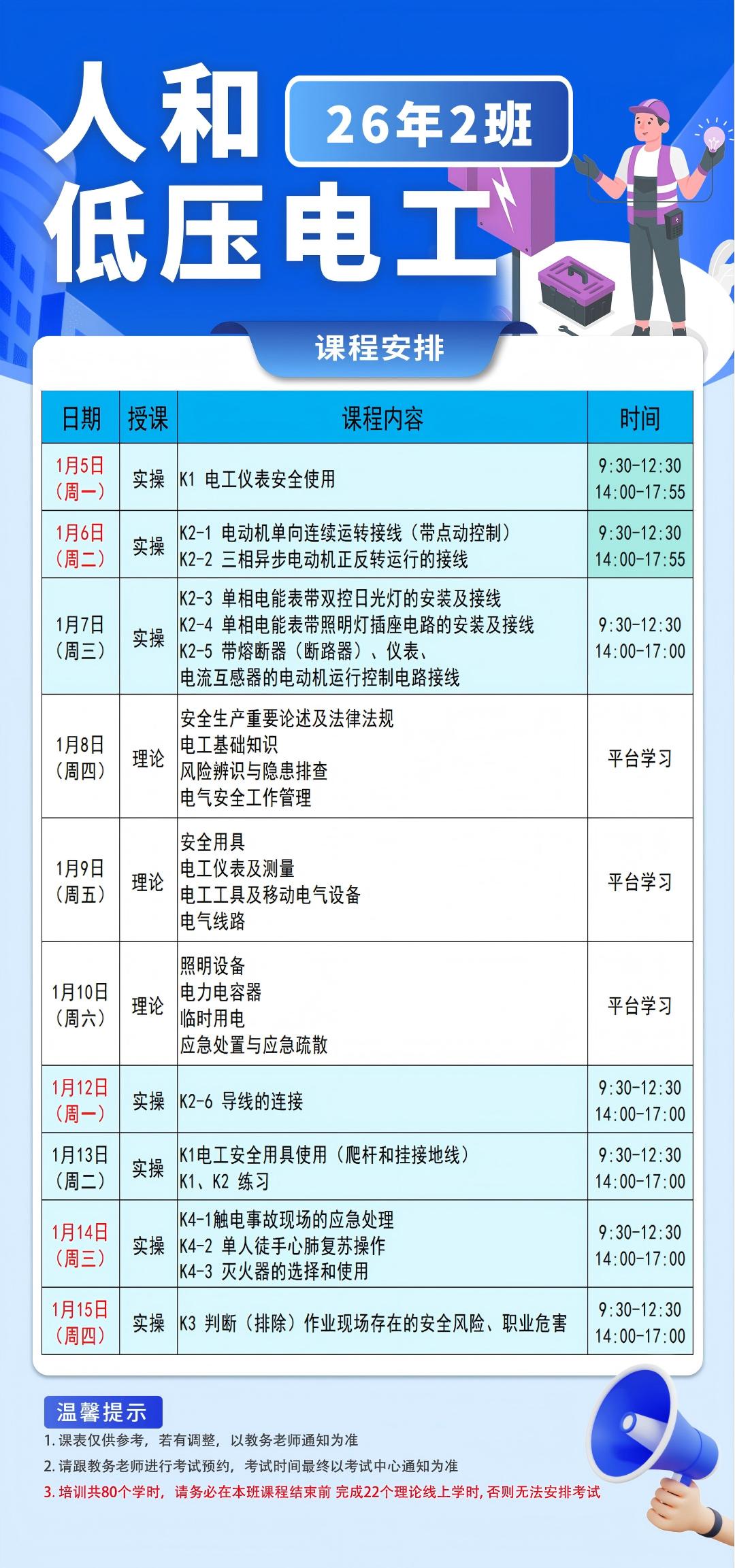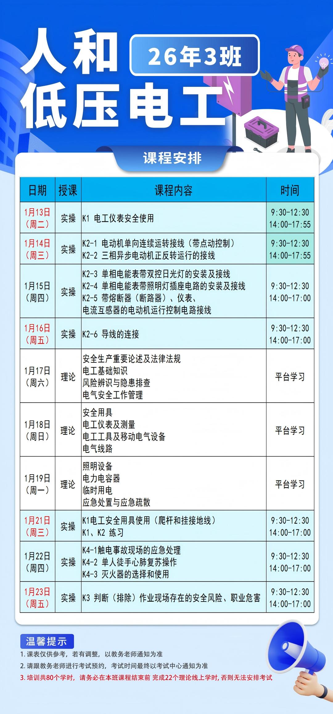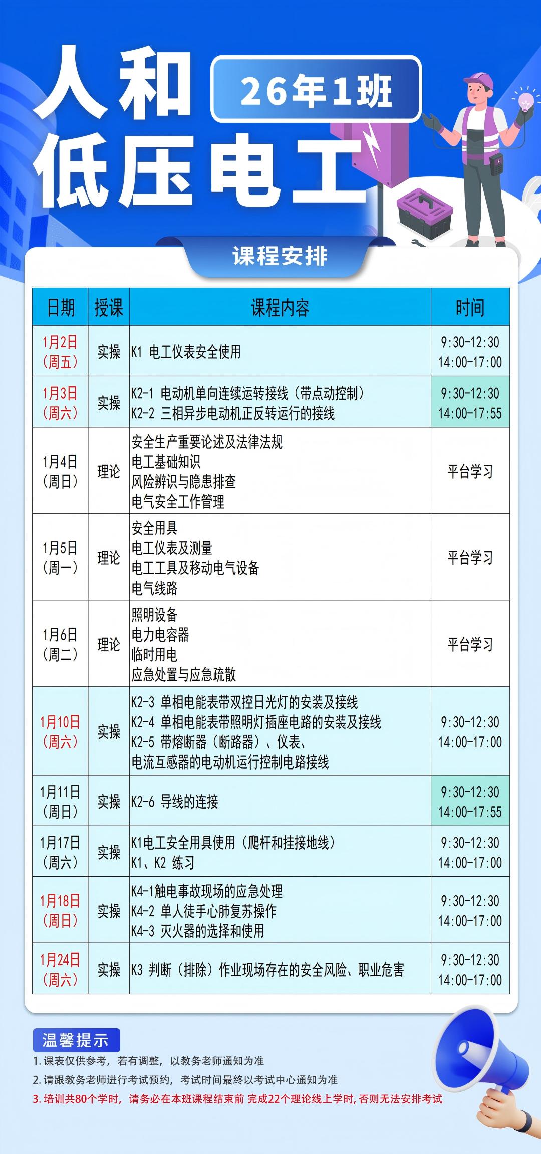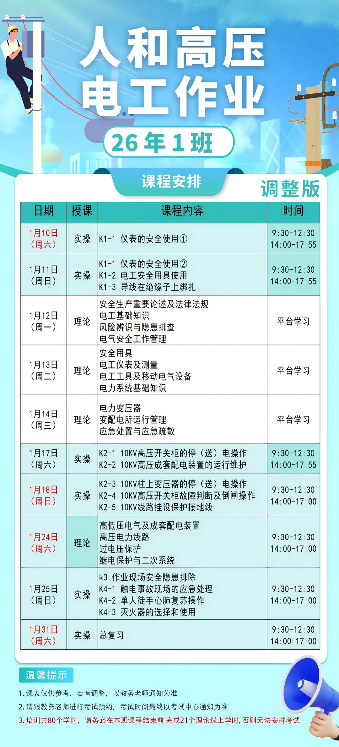 26年高压1班-人和(1月课表:最晚截止招生:1月8日中午12点前)