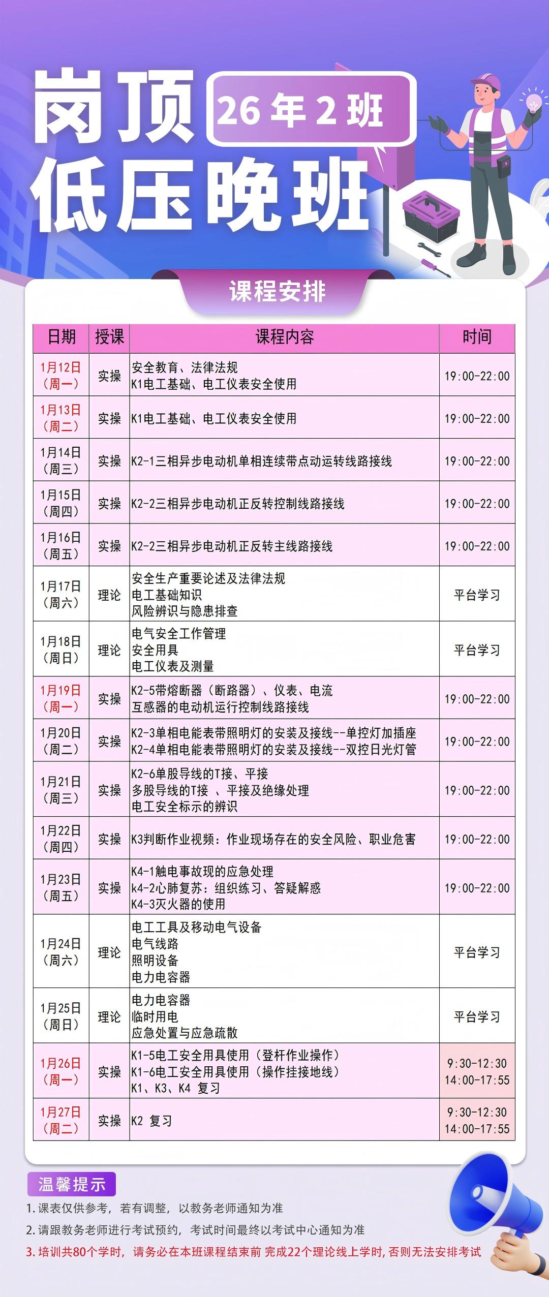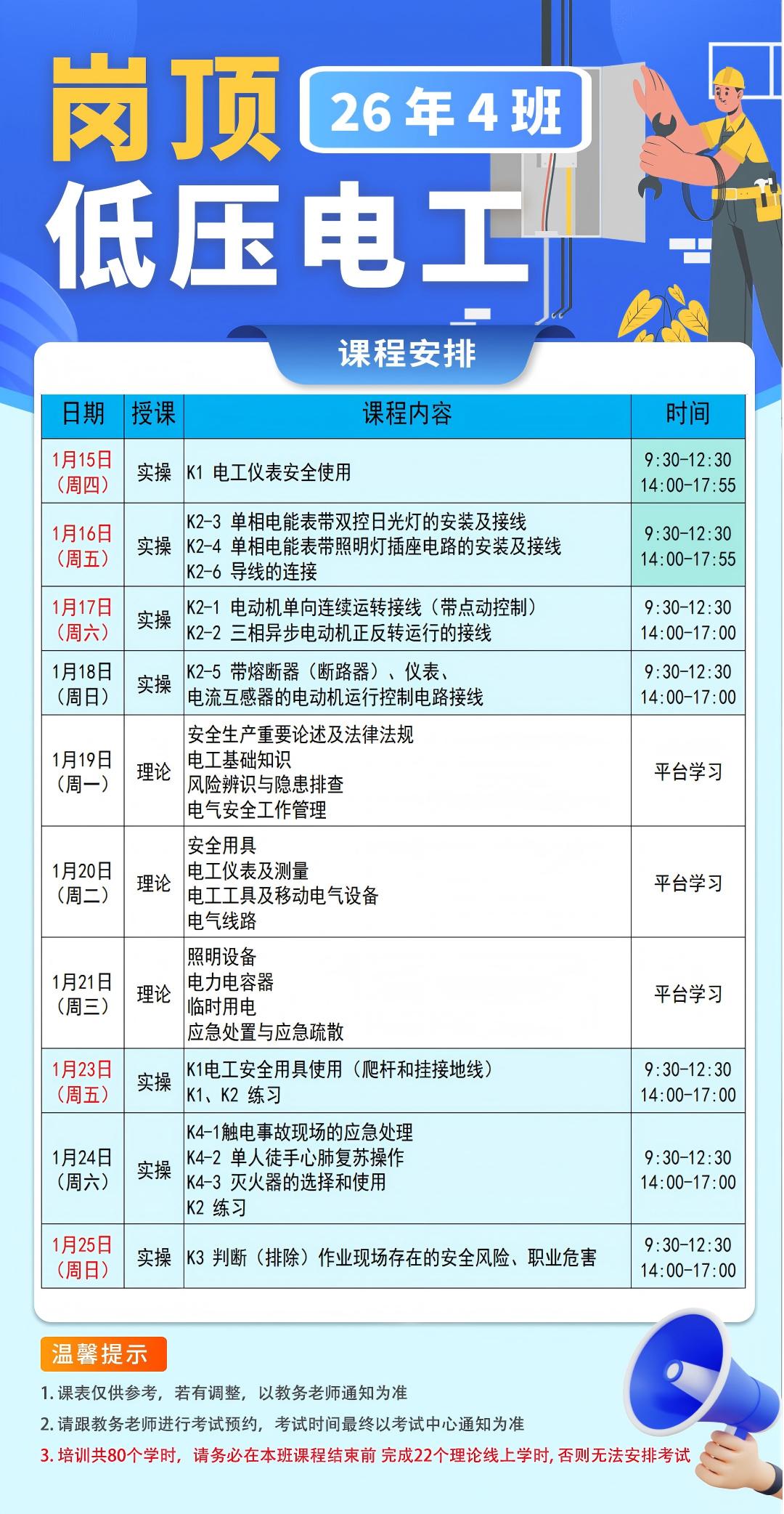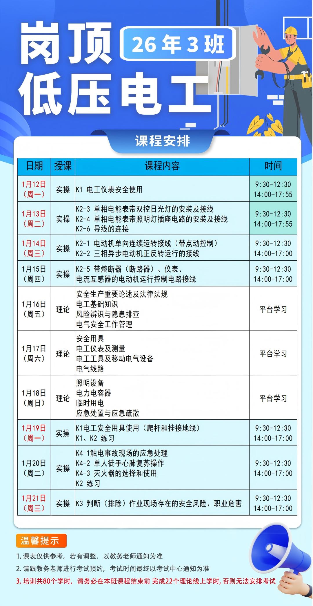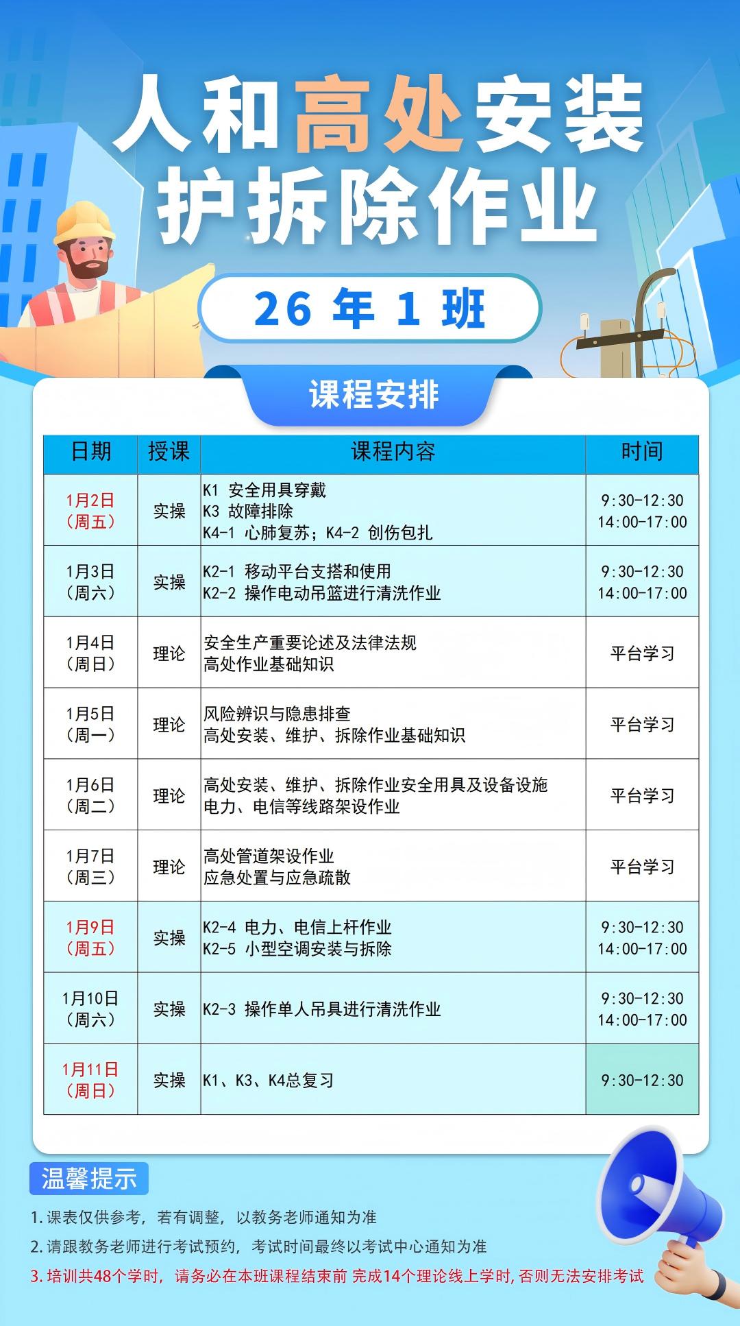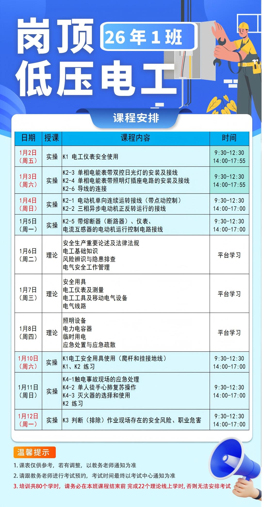 26年高压1班-人和(1月课表:最晚截止招生:1月8日中午12点前)