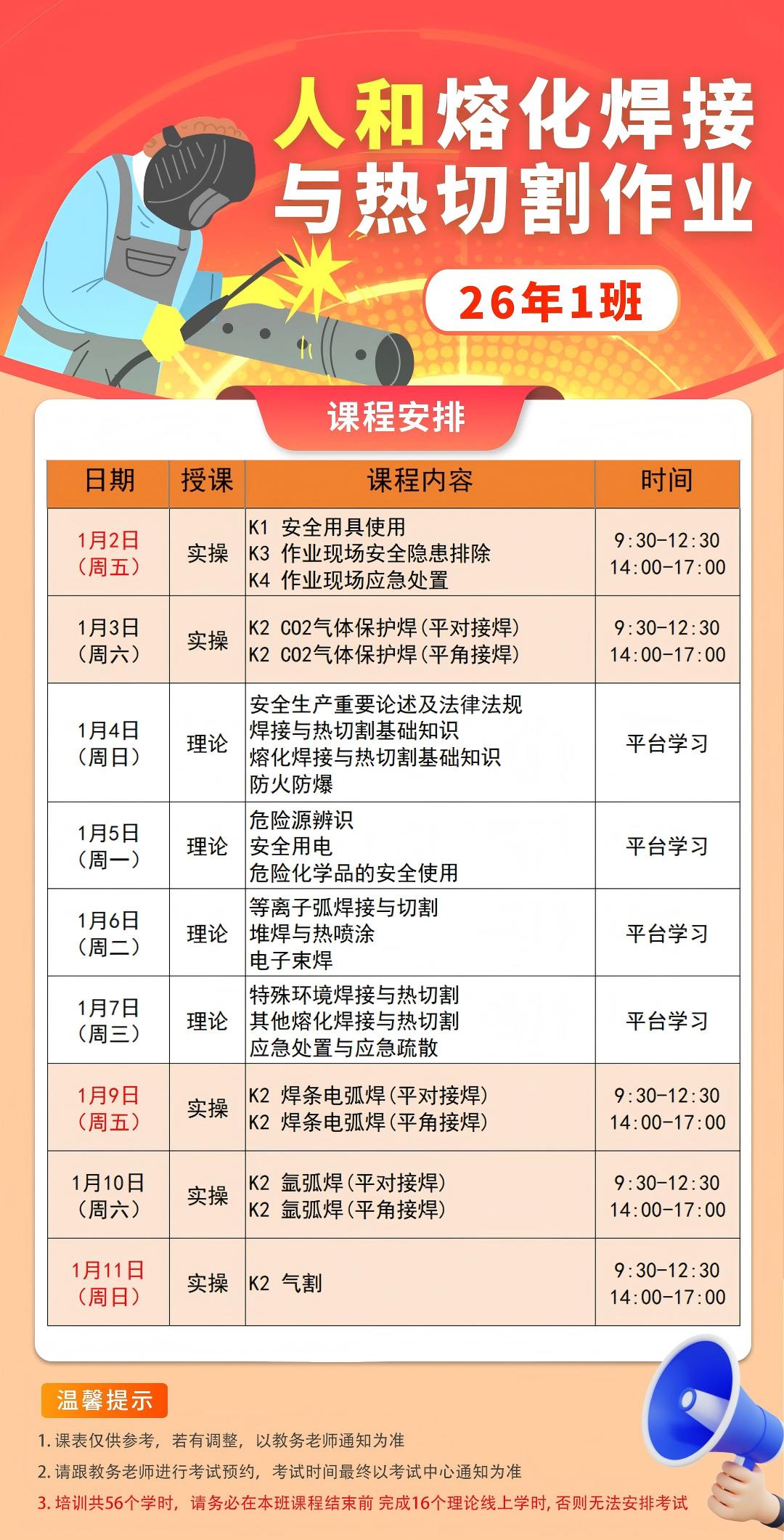 26年焊工1班-人和(1月课表:最晚截止招生:12月31日中午12点前)